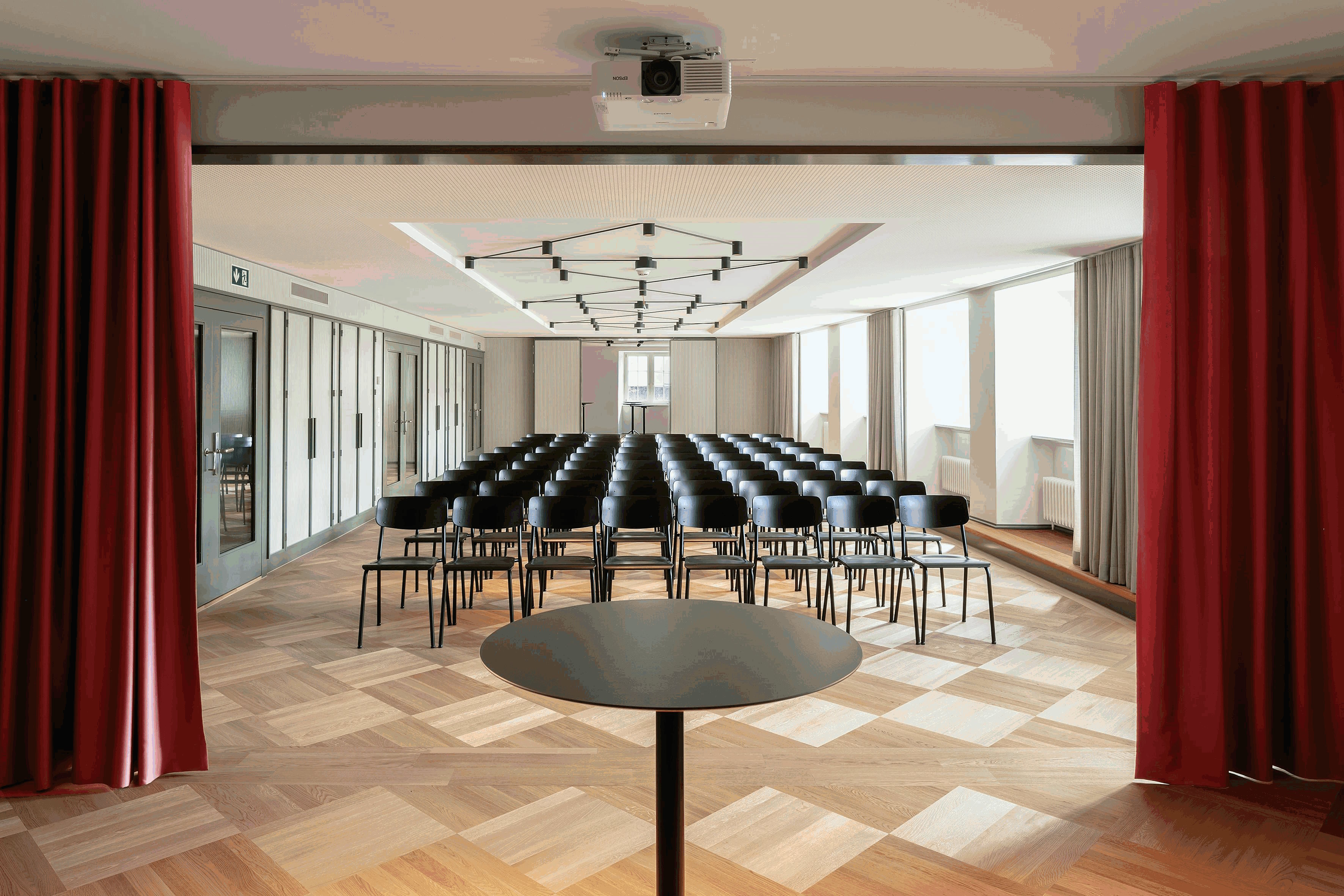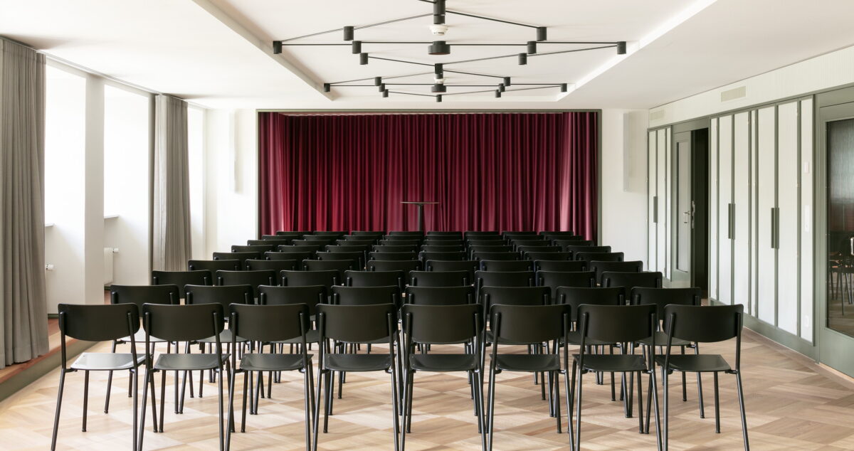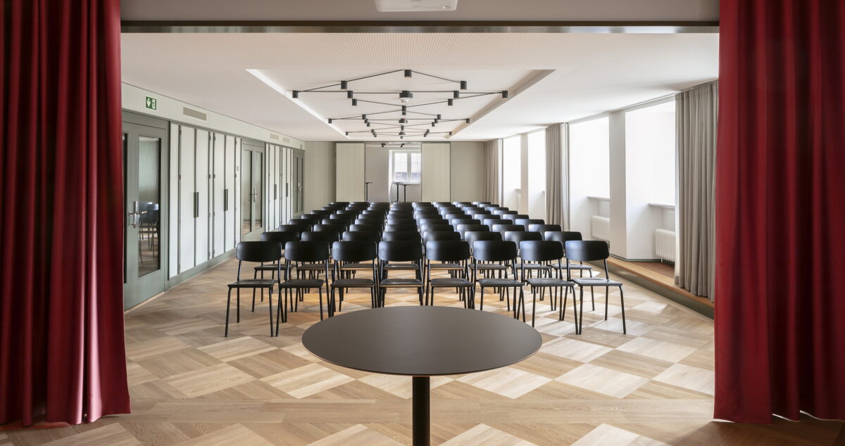 Entdecken Sie unseren Grosser Saal als vielseitiger Meetingraum, der sich ideal für Vorträge und Präsentationen eignet. Mit einer großzügigen Fläche von 131 m2 bietet dieser Raum den perfekten Rahmen für Ihre geschäftlichen oder privaten Veranstaltungen. Die moderne Ausstattung und flexible Bestuhlungsmöglichkeiten sorgen dafür, dass Ihre Präsentationen und Vorträge stets professionell und ansprechend gestaltet sind.