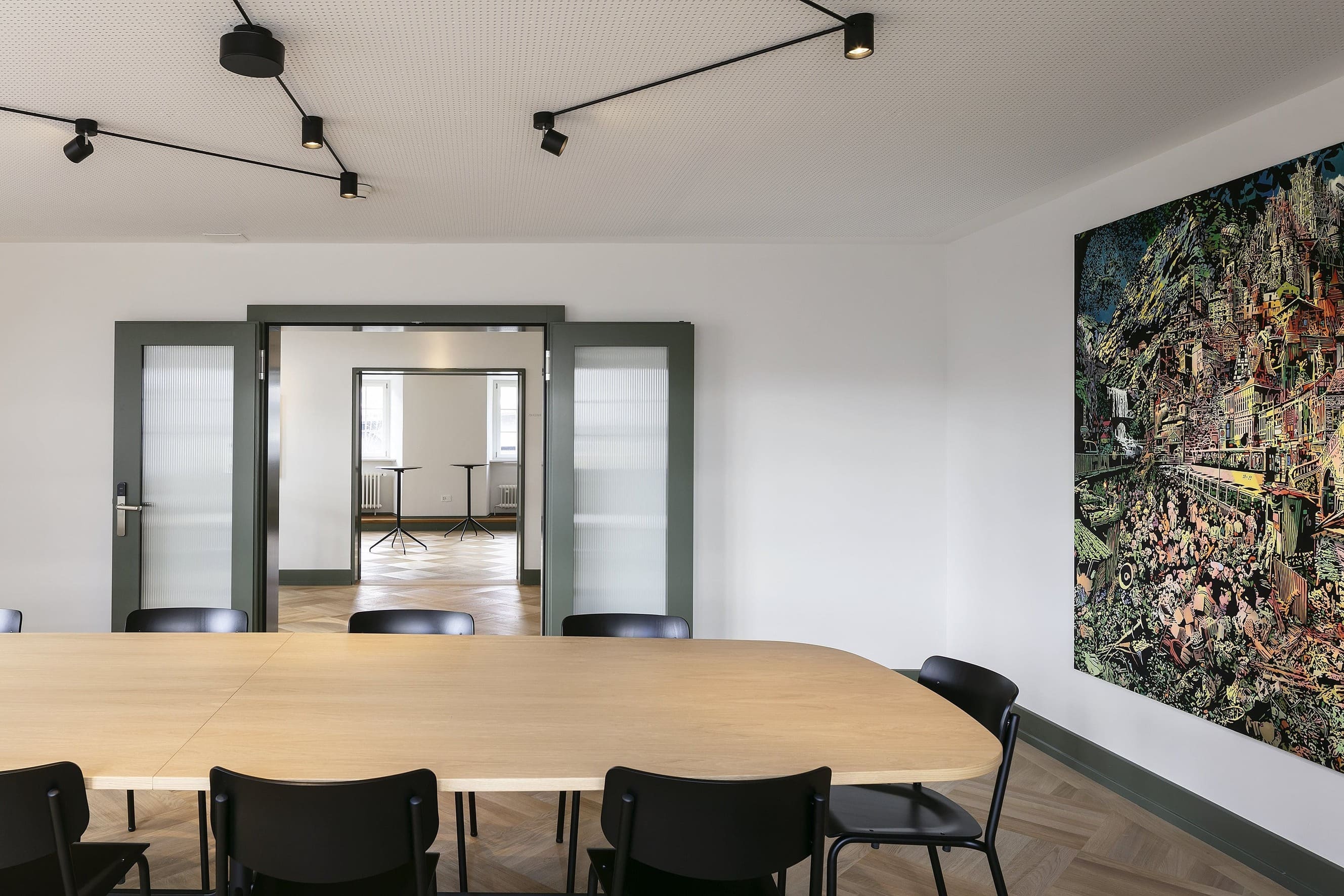 Buchen Sie unseren kleinen und fokussierten Besprechungsraum, perfekt für intensive Meetings mit bis zu 6 Personen. Auf 22m² bietet dieser Raum eine ideale Umgebung für produktive Gespräche und konzentrierte Zusammenarbeit.