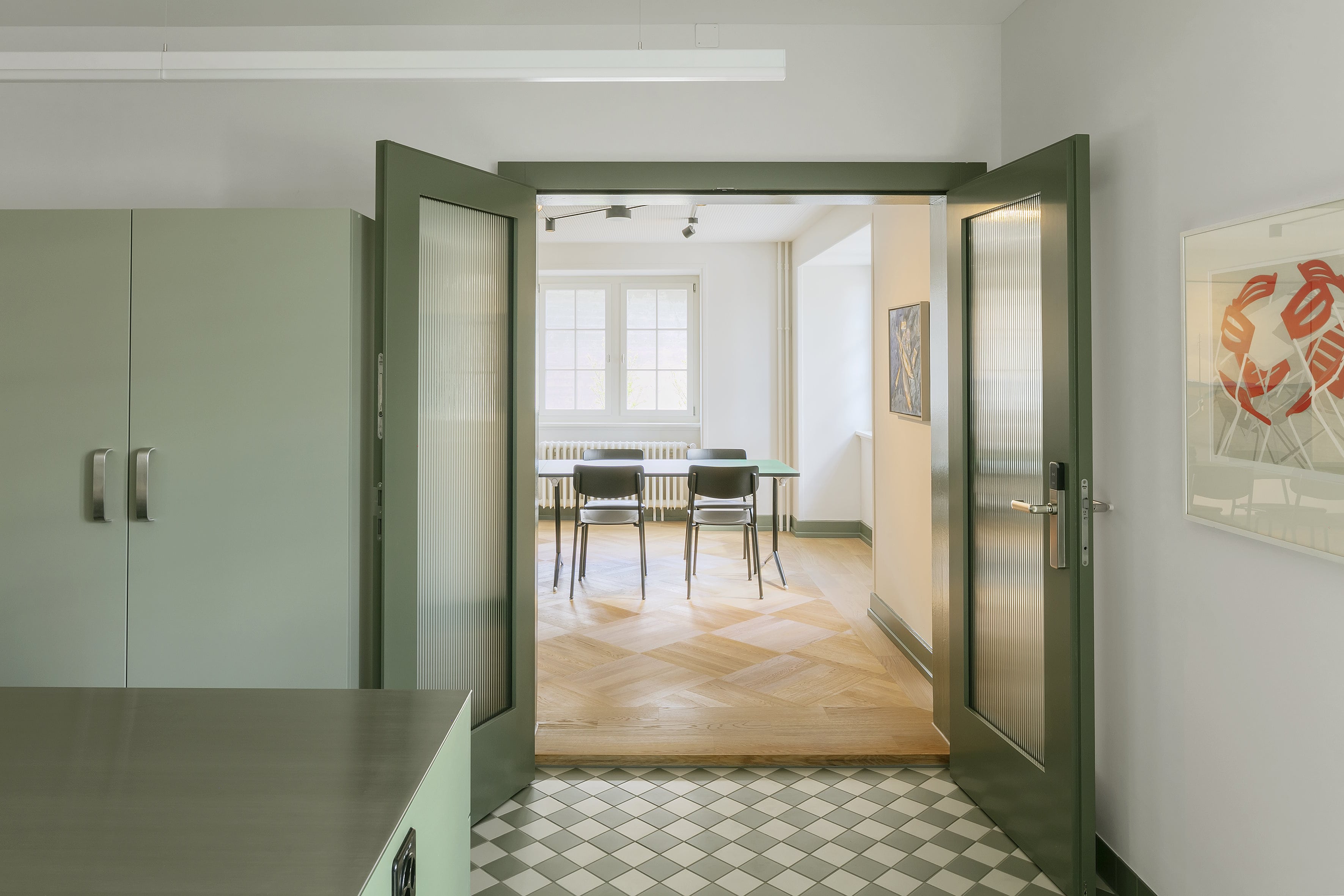 Mit direktem Zugang zur Küche und zum großen Saal bietet dieser Raum höchste Flexibilität für Ihre Veranstaltung. Beachten Sie, dass der Essraum keine Haupttüre hat, was ihn besonders für interne Veranstaltungen geeignet macht. Nutzen Sie diesen praktischen und gut ausgestatteten Raum, um Ihre Gäste zu beeindrucken und Ihre Veranstaltung unvergesslich zu machen.